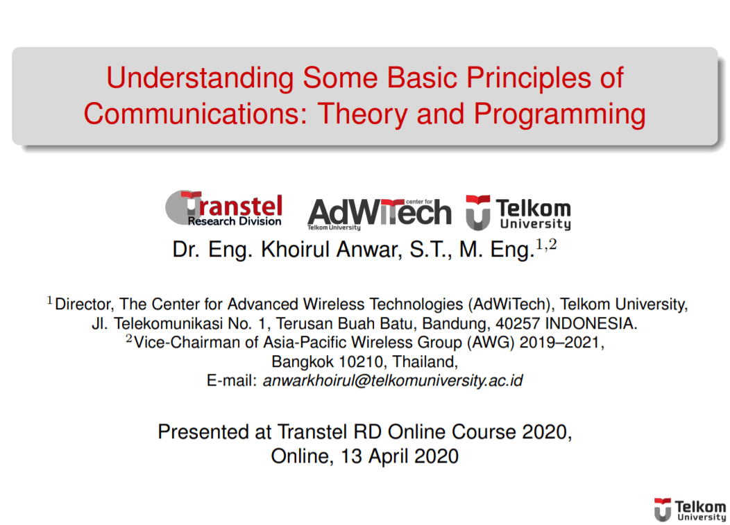 Monday, 13th of April 2020, Transtel Research Division held an online course which presented Dr. Eng. Khoirul Anwar as the…